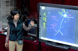 1月17日晚上,明湖國小依照往例舉辦觀星活動。活動的主題是「2008冬季星空饗宴」,內容由天文社團指導老師、自然及資訊領域老師共同設計,希望藉由觀星活動,窺探星空的奧秘,增進大家的文知識。這次主要的觀測對象是冬季星空和火星,「親子觀星會」的叔叔們特地前來協助望遠鏡觀測活動;我們幾個天文社的成員還充當小助教,協助講師授課。實際認星與望遠鏡觀測活動雖然因天氣不佳而受到影響,還好老師們早就有「陰雨天備案」,不但讓活動順利進行,也讓參與的同學滿載而歸。