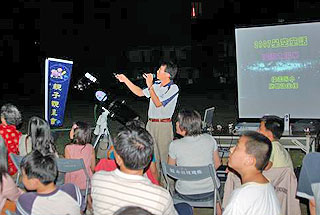 所以,施老師希望盡自己的力量,到各校推廣天文。他覺得目前要做的是天文普及化,像日本就做得很好。為了達到目標,希望成立巡迴的天文社,就是開著車子都不用搬的「巡迴天文車」。以他來說,搬器材是很費時費力的事;從車子上面搬下來,再組裝,再把它收上去,最後再搬到三樓。他辦了三十幾場,就搬了六十幾趟。
