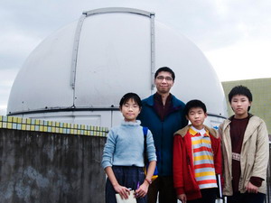 施老師今年42歲,是逢甲大學環境科學系畢業的,專長是自然科學還有環境生態方面。開始接觸天文是高中的時候,那時候用壓歲錢買了一台小小台的望遠鏡。當時住在屏東的鄉下,光害比較少,在院子裡抬頭就看到滿天的星星,當時就開始接觸天文。在哈雷彗星來的那一次,雖然那時候的設備很爛,也沒有赤道儀,看到的彗星就像是一個小小模糊的星點,卻讓他留下深刻的印象。當老師以後,經濟比較寬裕,玩的就比較多,他最近這兩年開始添購望遠鏡,並且也在學校開始推廣天文活動。 |
